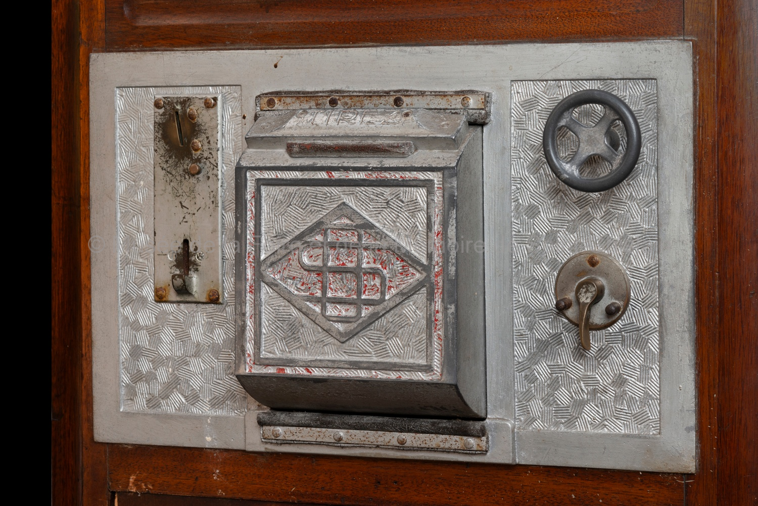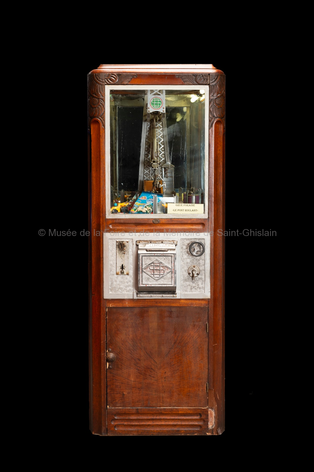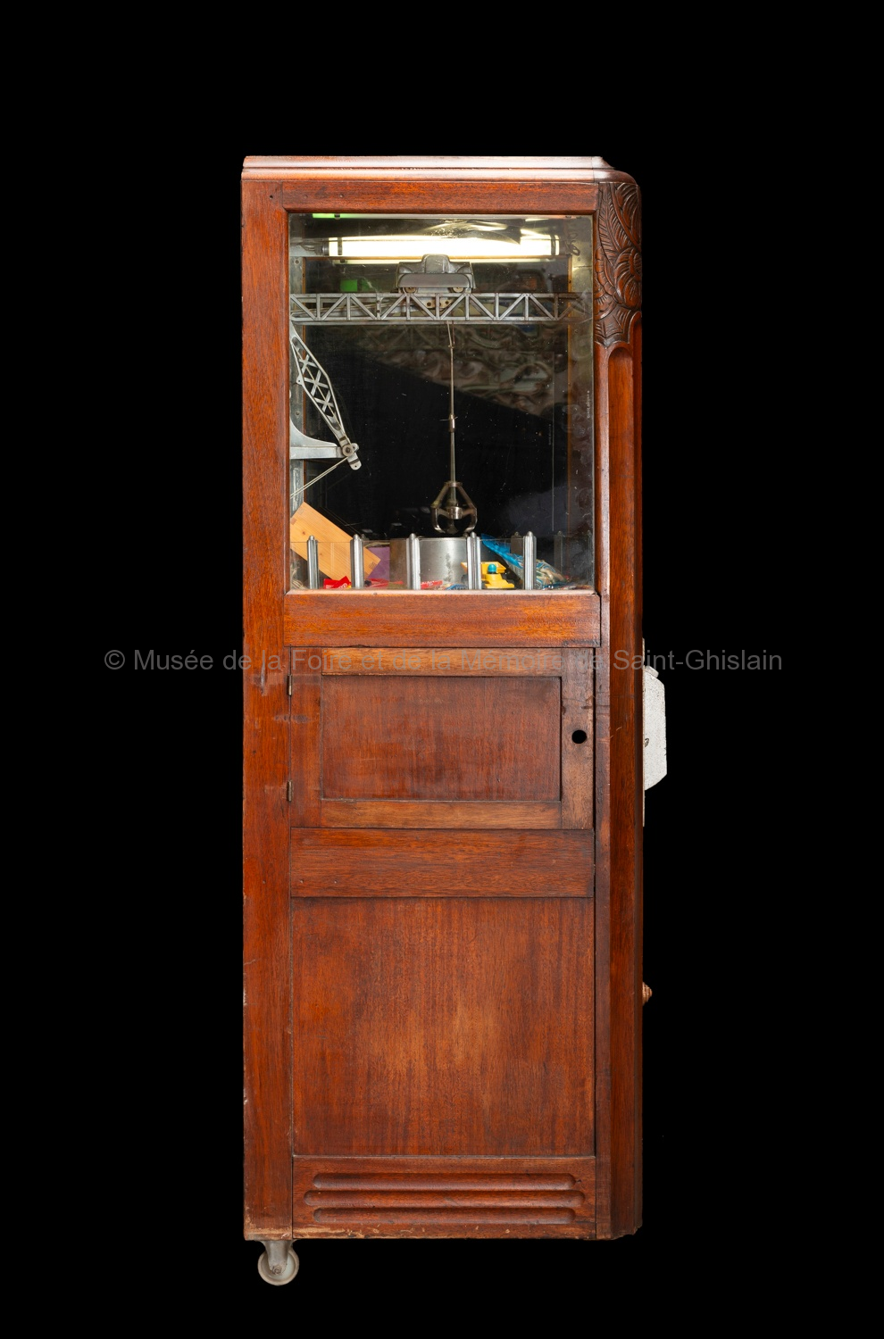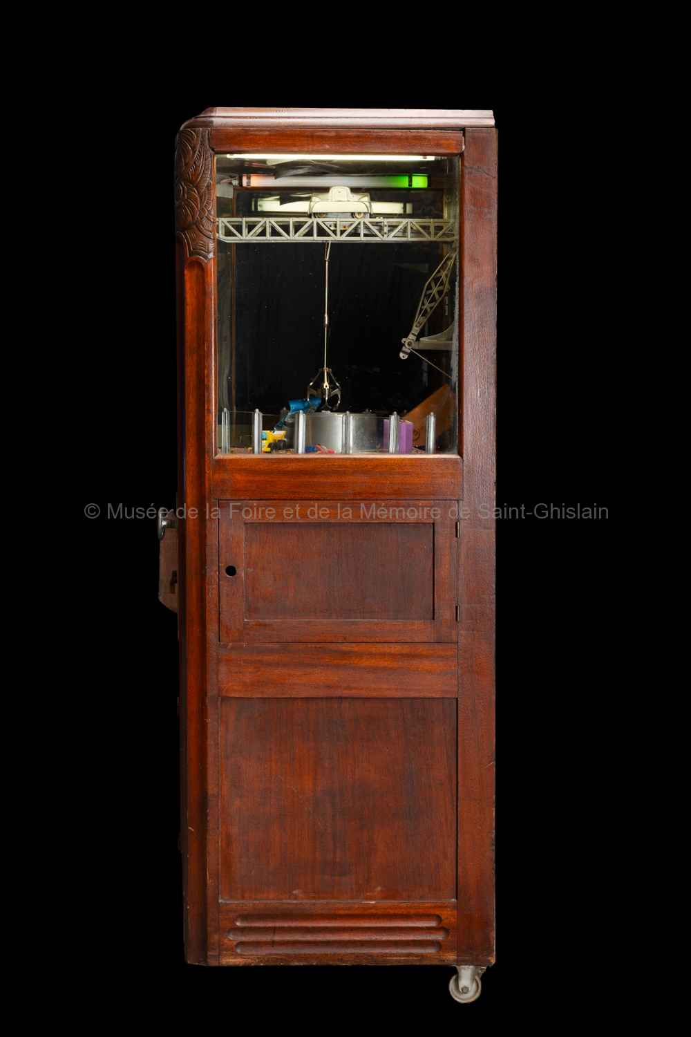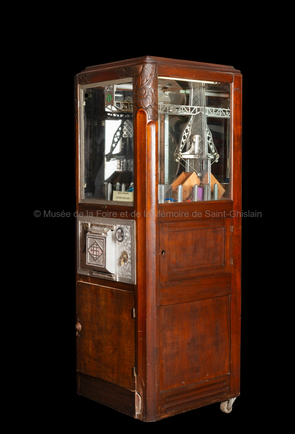 Bois, métal, verre, circuits électriques. Dimensions : environ 180 H x 45 P x 45 L cm