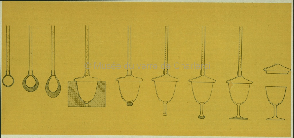 Croquis des étapes du façonnage d'un verre à pied. Format : 22 cm |