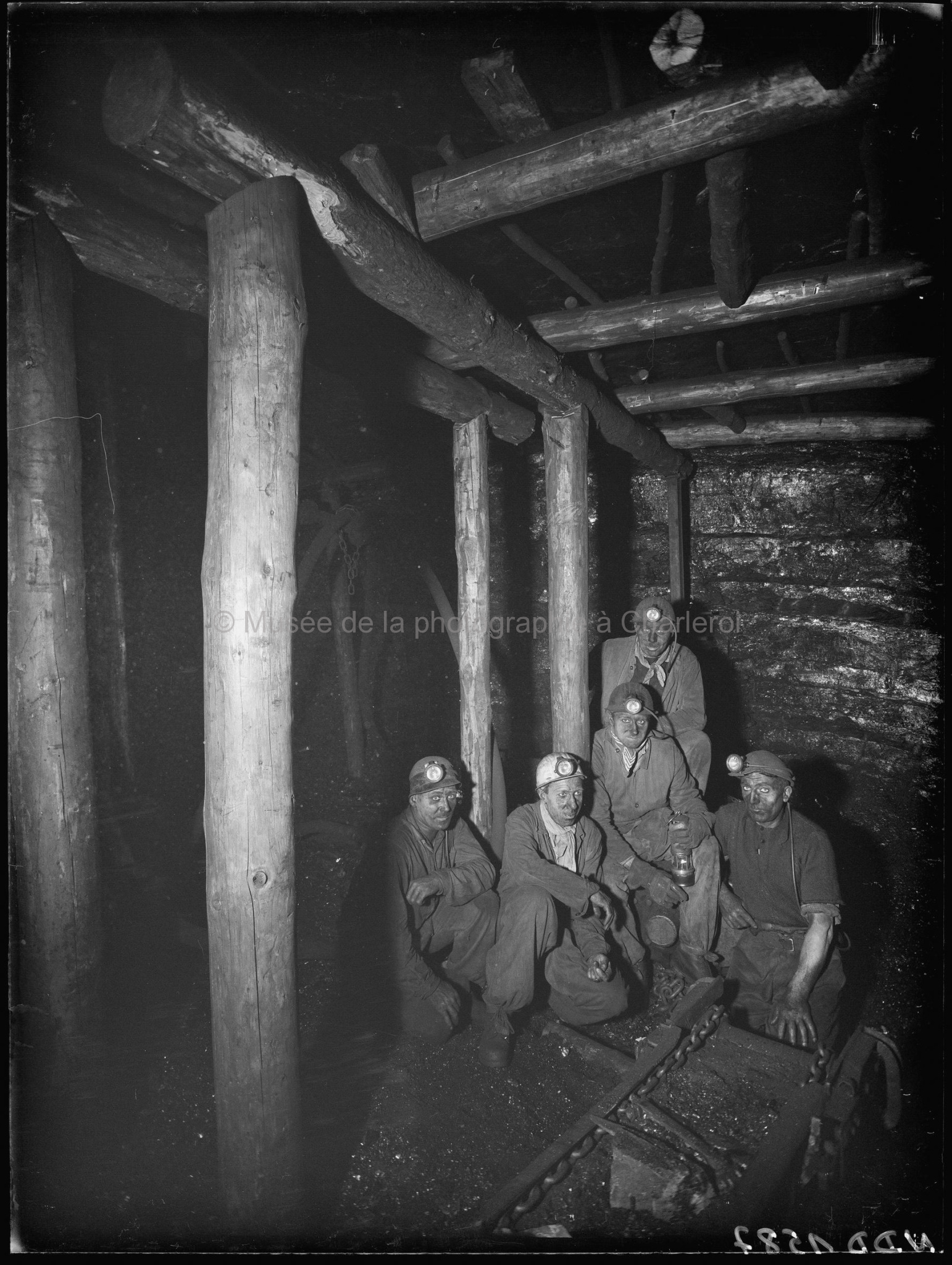 Négatif sur verre au gélatino-bromure d’argent. (Le support analogique numérisé est un négatif, il est affiché ici en positif). 23 novembre 1961. Charbonnage Saint-Antoine de Boussu-Bois, taille "Abbaye"étage 1030 mètres. Dimensions photo : 11,5 x 8,9 cm |