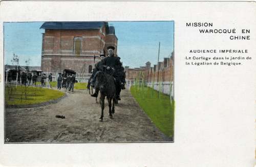 En 1910, le gouvernement belge charge Raoul Warocqué de présider la mission qui doit annoncer à l'empereur de Chine le décès du roi Léopold II et l'avènement d'Albert 1er. Parti par le Transsibérien le 29 mai, il rentre le 20 juin après avoir effectué un crochet au Japon. Il en profite pour enrichir sa collection d'art chinois. Une série de cartes postales retracent les principales étapes de ce voyage.